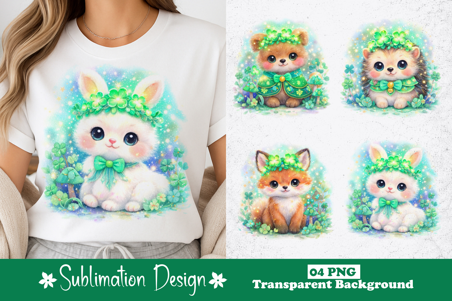 Magical Glowing Shamrock Baby Animals PNG