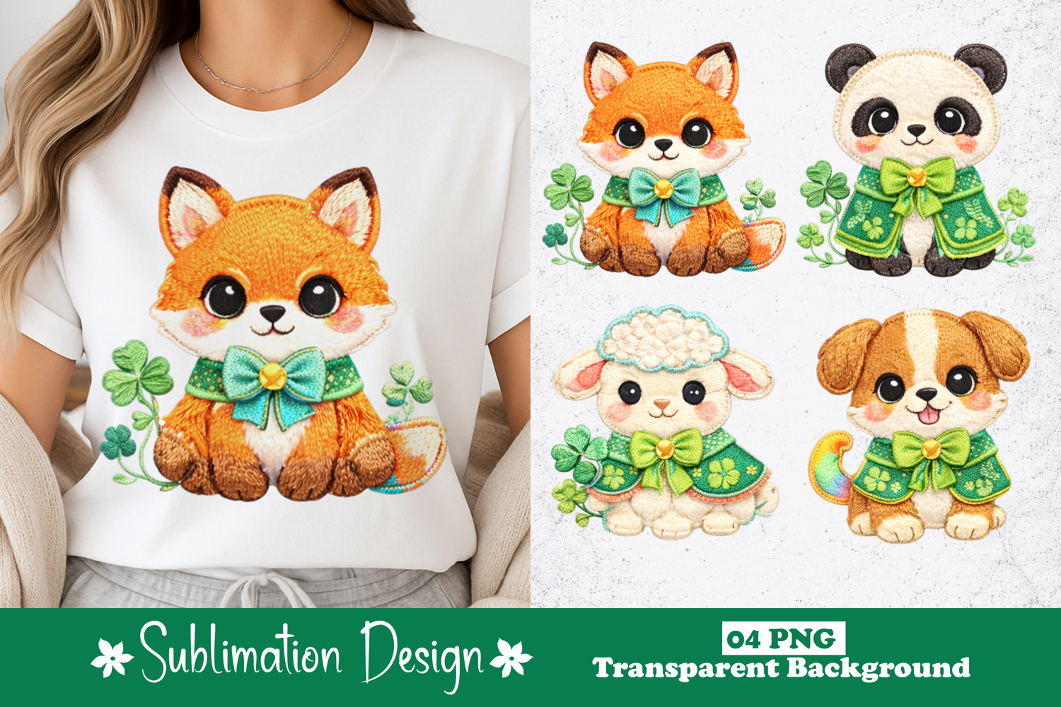 Embroidery Style St. Patrick’s Day Baby Animals PNG