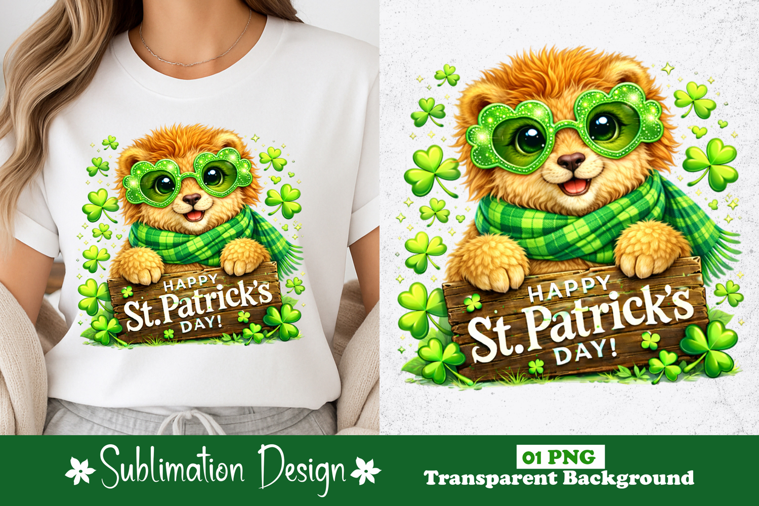 Cute Lion Happy St. Patrick’s Day Sublimation Design