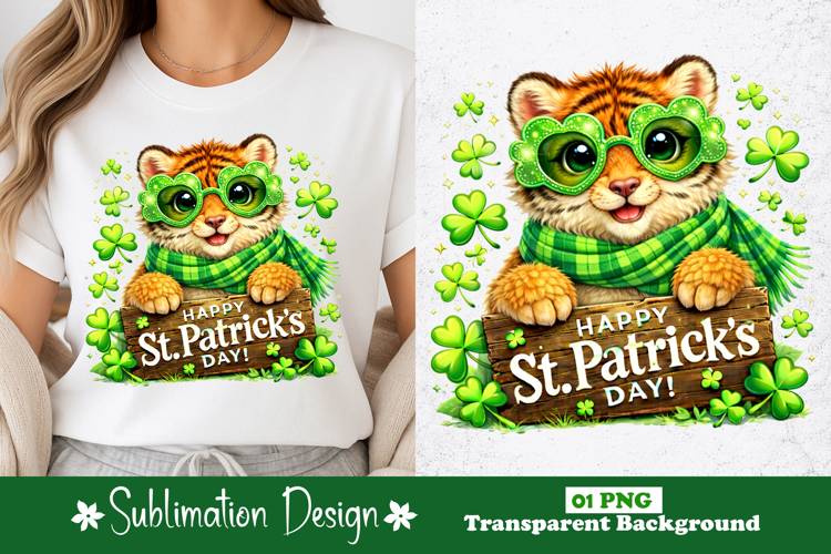 Cute Tiger Happy St. Patrick’s Day Sublimation Design
