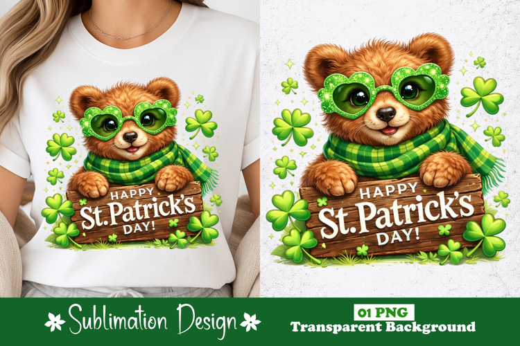 Cute Bear Happy St. Patrick’s Day Sublimation Design