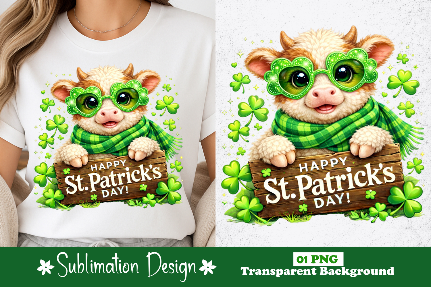 Cute Calf Happy St. Patrick’s Day Sublimation Design