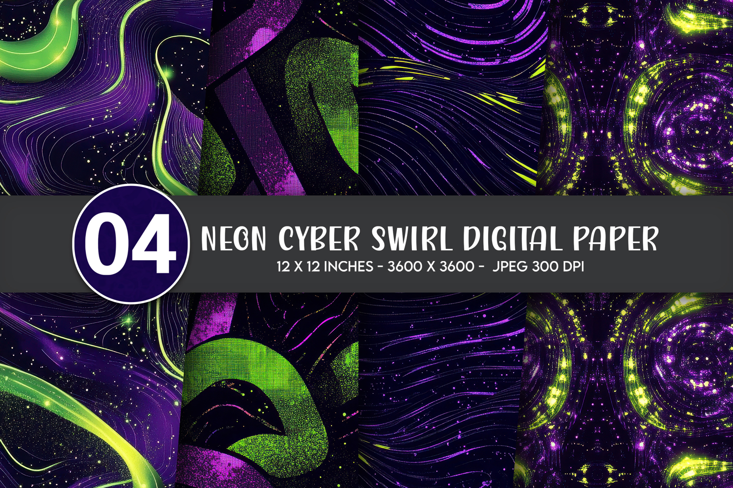 Neon Cyber Swirl Digital Paper