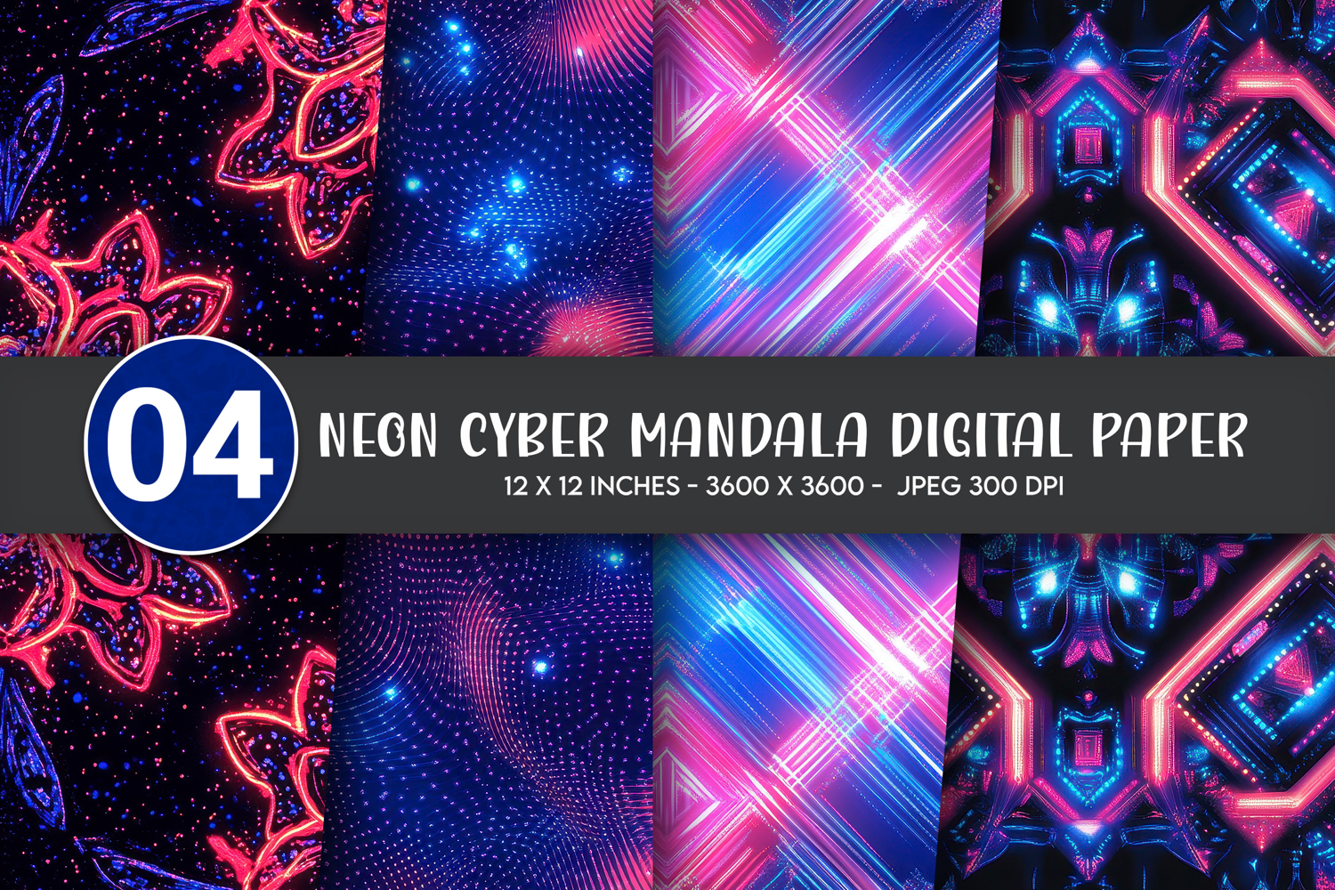 Similar Design Products to Neon Cyber Mandala Digital Paper