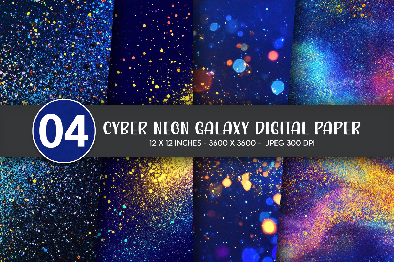 Cyber Neon Galaxy Digital Paper