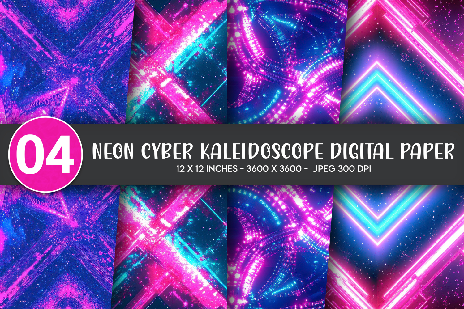 Neon Cyber Kaleidoscope Digital Paper
