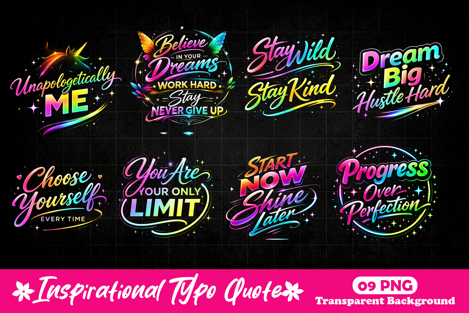 Motivational Quote Inspirational Quote Png Positive Mindset Art Believe In Yourself Design Dream Big Typography Success Slogan Svg Hustle Hard Quote Self Growth Print Empowerment Typography Retro Neon Inspiration