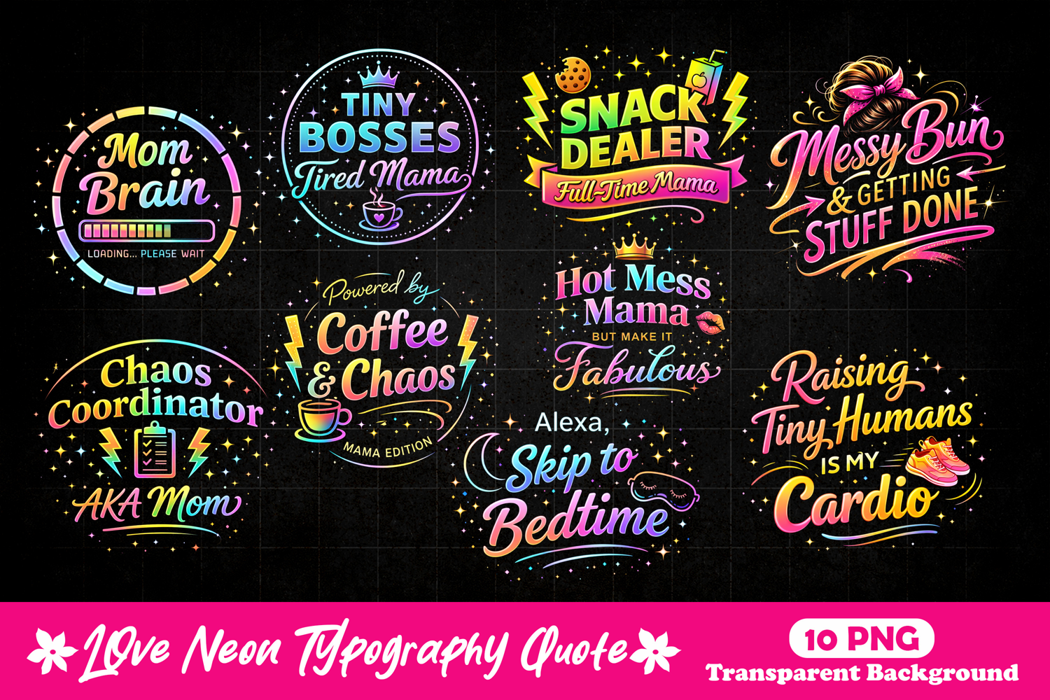 Similar Design Products to Mom Life quote Funny Mama Neon Typography PNG