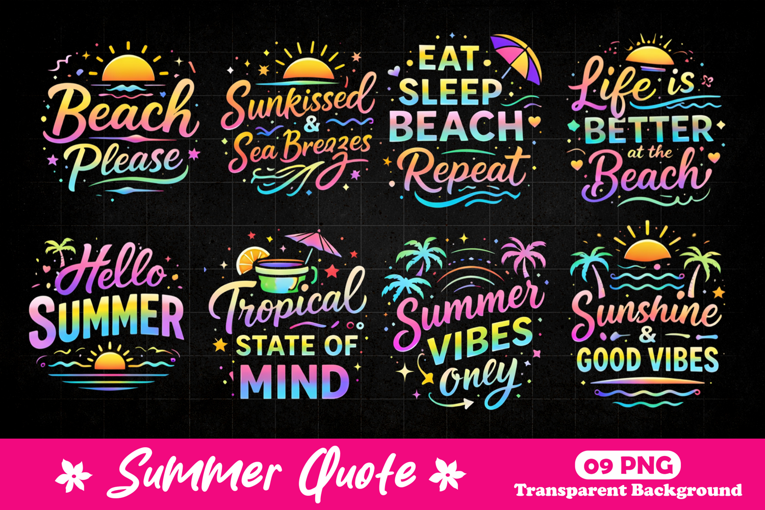 Summer Beach Vibes Neon Typography Quote Designs