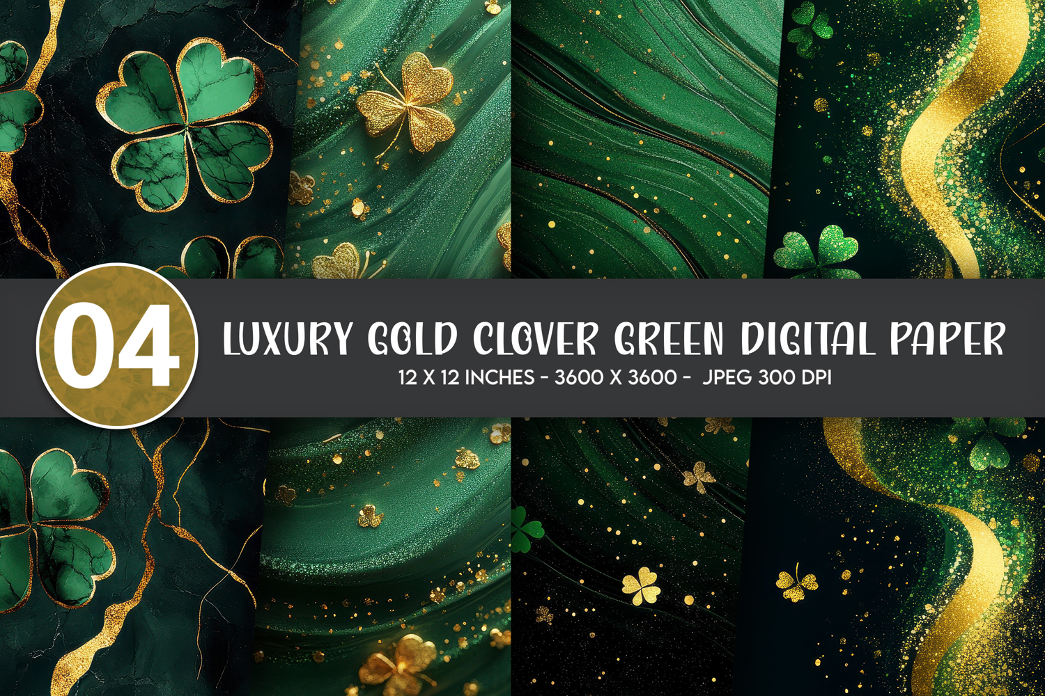 Luxury Gold Clover Green Digital Paper