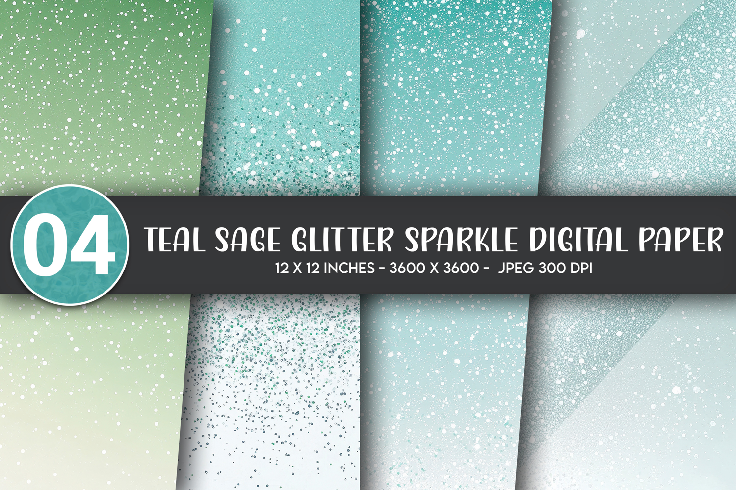 Teal Sage Glitter Sparkle Digital Paper