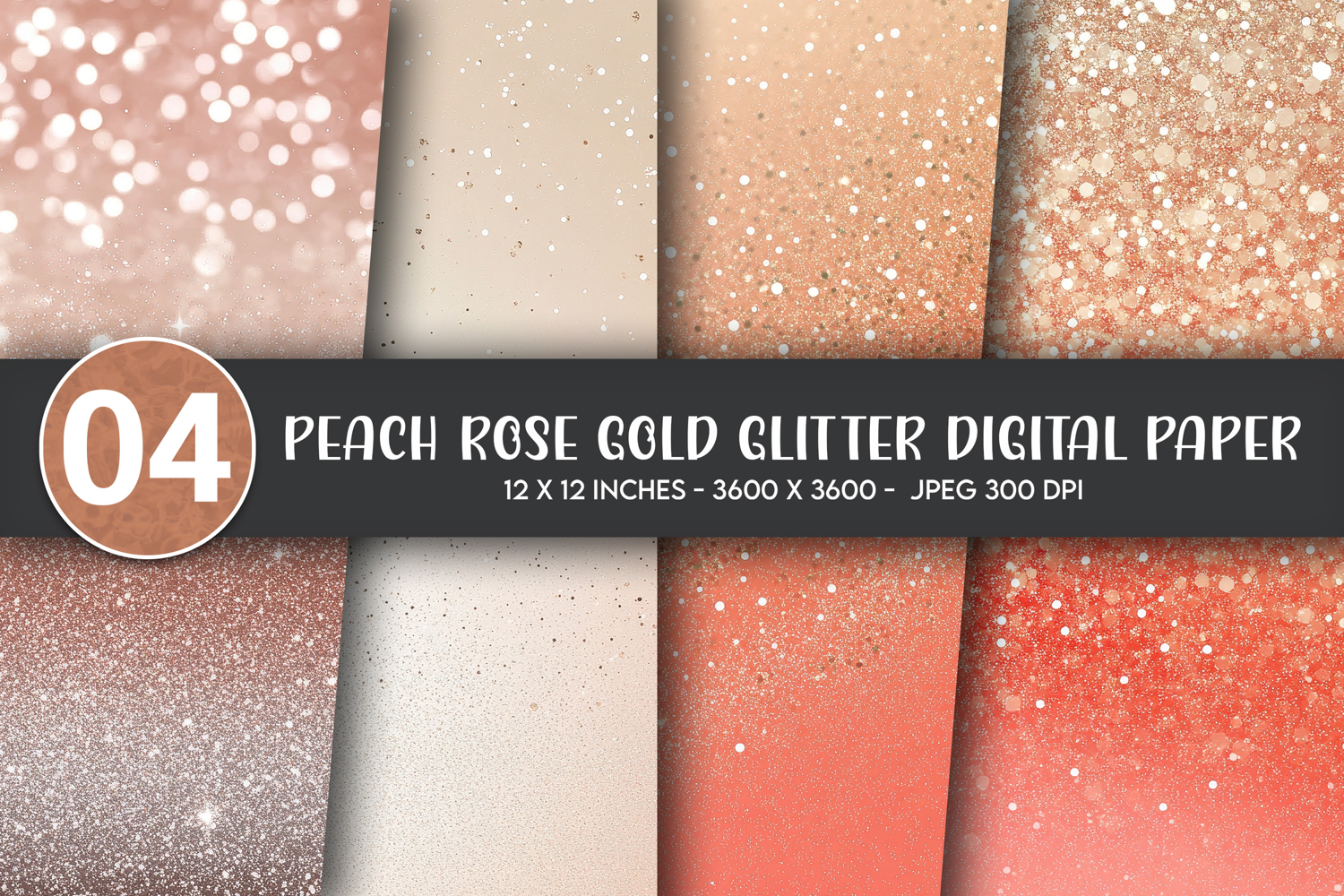 Peach Rose Gold Glitter Digital Paper