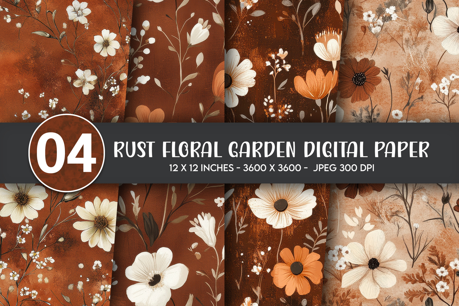 Botanical Digital Paper Wildflower Background Vintage Botanical Pattern Burnt Orange Floral Autumn Flower Pattern Rustic Floral Texture Garden Floral Pattern Rust Floral Pattern Terracotta Flower Background Earthy Flower Background