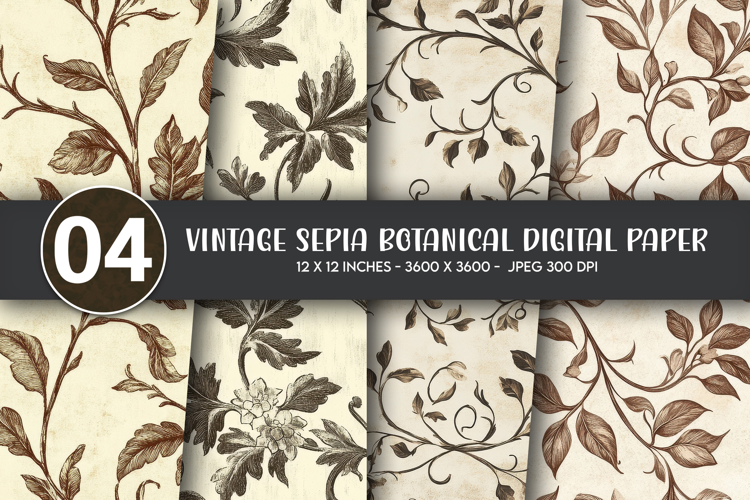 Vintage Sepia Botanical Digital Paper
