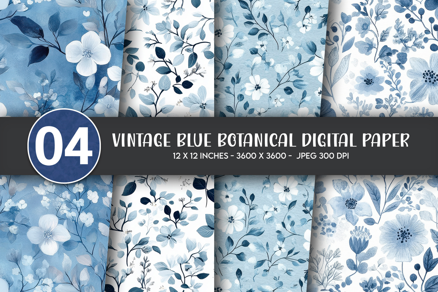 Similar Design Products to Vintage Blue Botanical Digital Paper