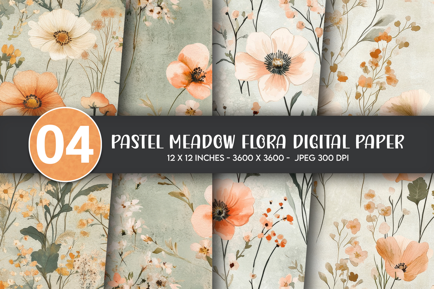 Meadow Digital Paper Pastel Floral Pattern Watercolor Botanical Design Vintage Floral Background Wildflower Background Soft Flower Pattern Aesthetic Flower Background Cottagecore Petal Design Handpainted Botanical Paper Spring Wildflower Pattern