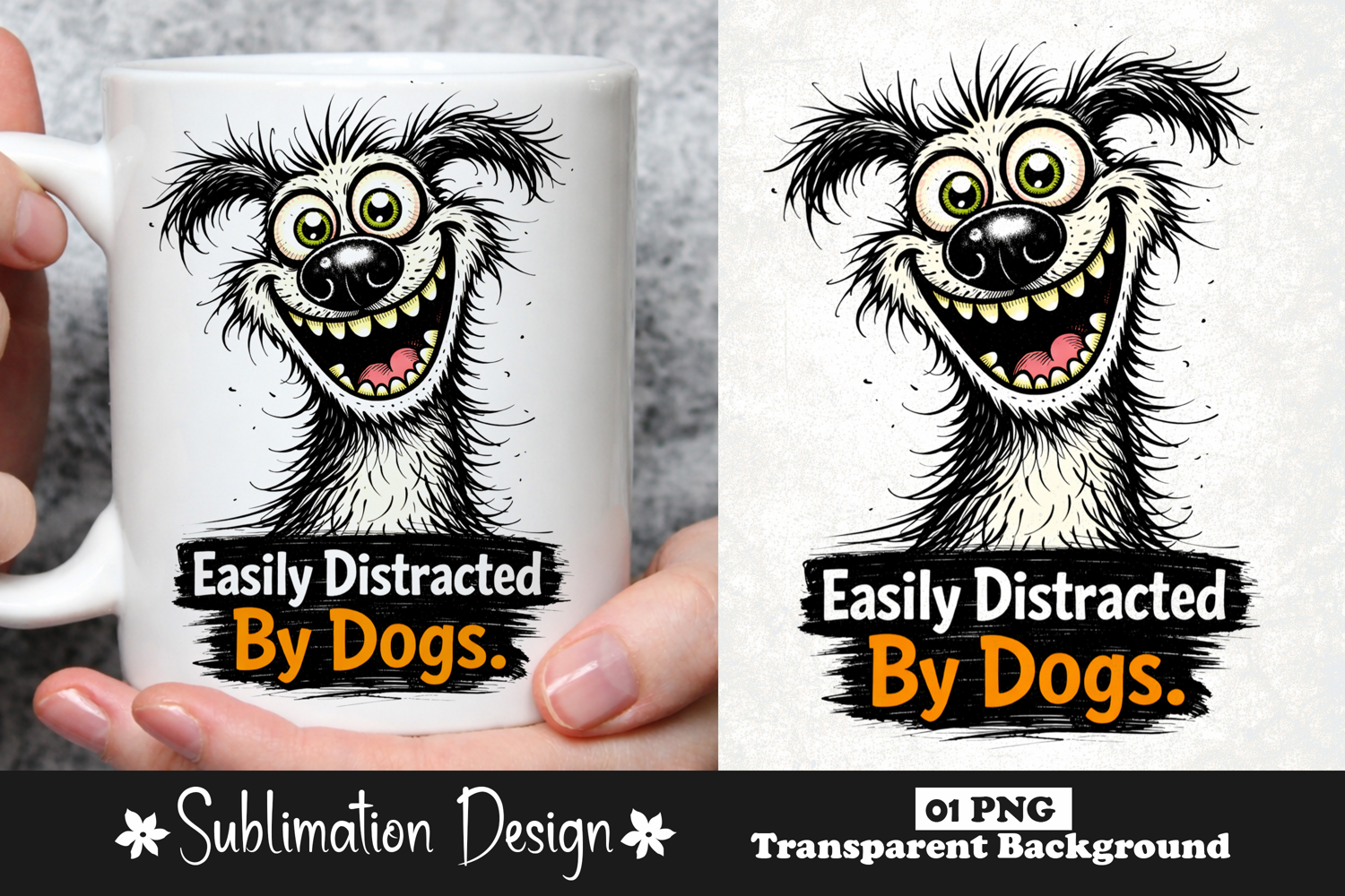 Dog Lover Gift Funny Dog Quote Easily Distracted Dog Mug Design Funny Pet Quote Dog Lover Humor Cartoon Dog Illustration Pet Humor Design Dog Owner Joke Dog Sublimation Graphic