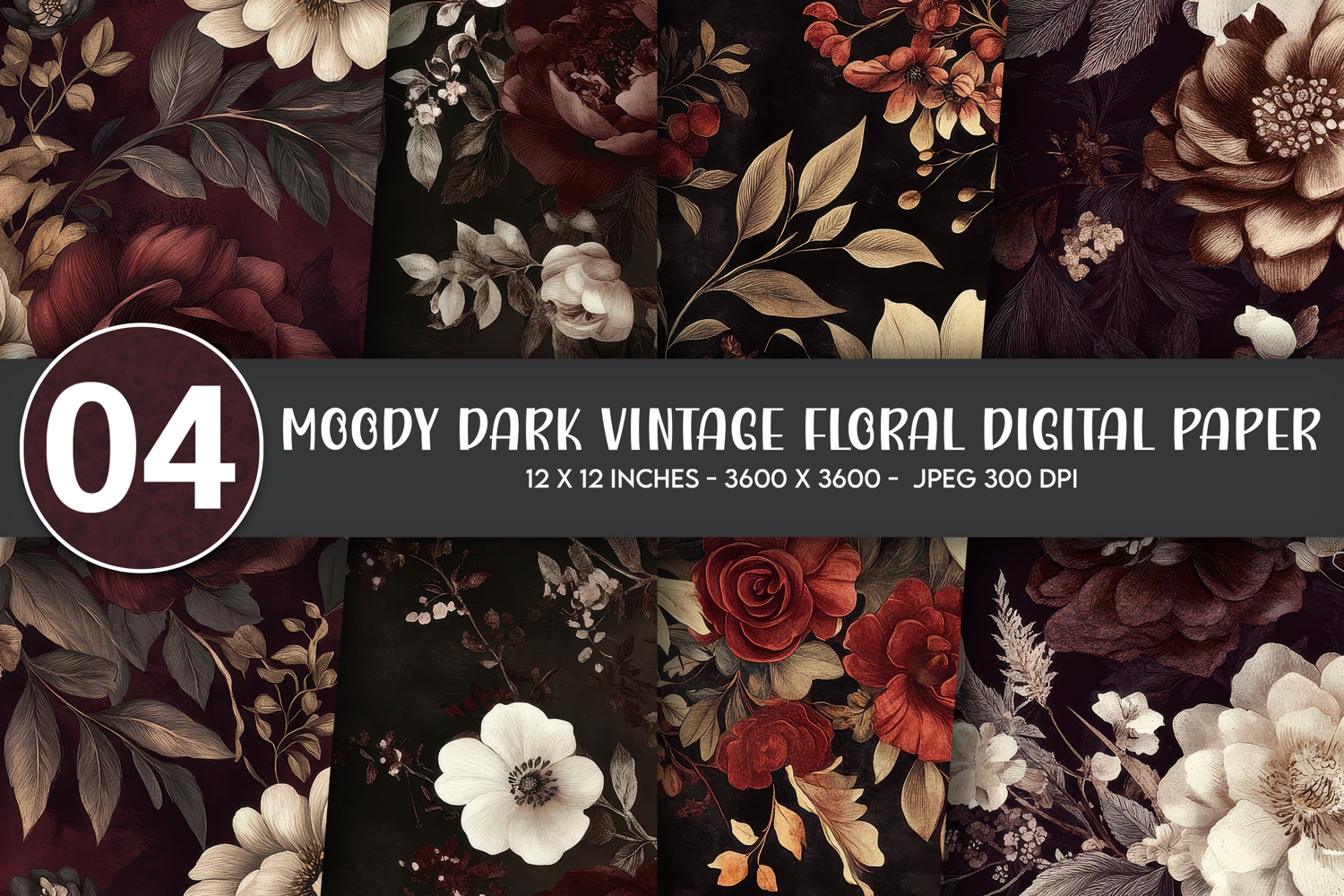 Similar Design Products to Moody Dark Vintage Floral Digital Paper