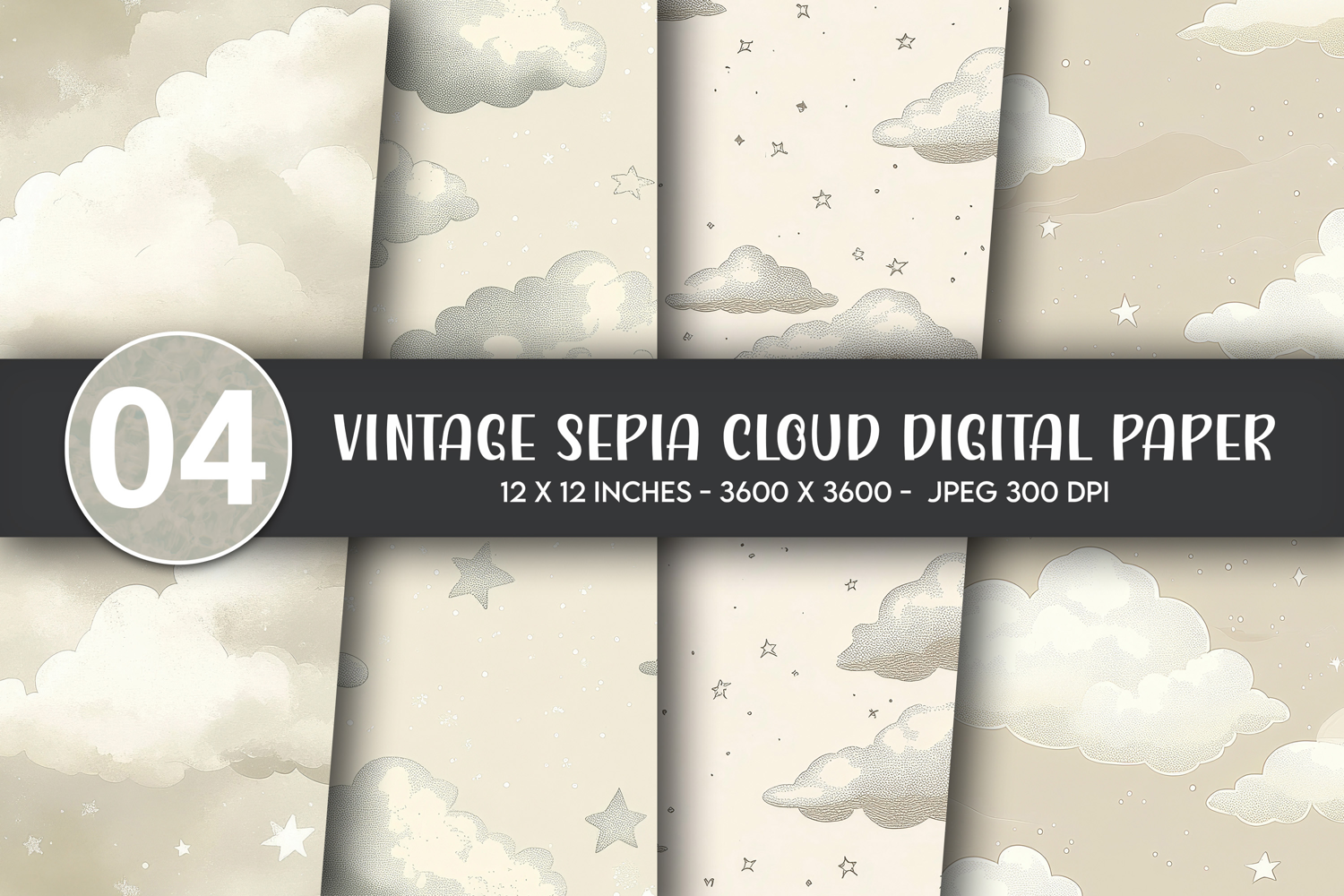Vintage Sepia Cloud Digital Paper