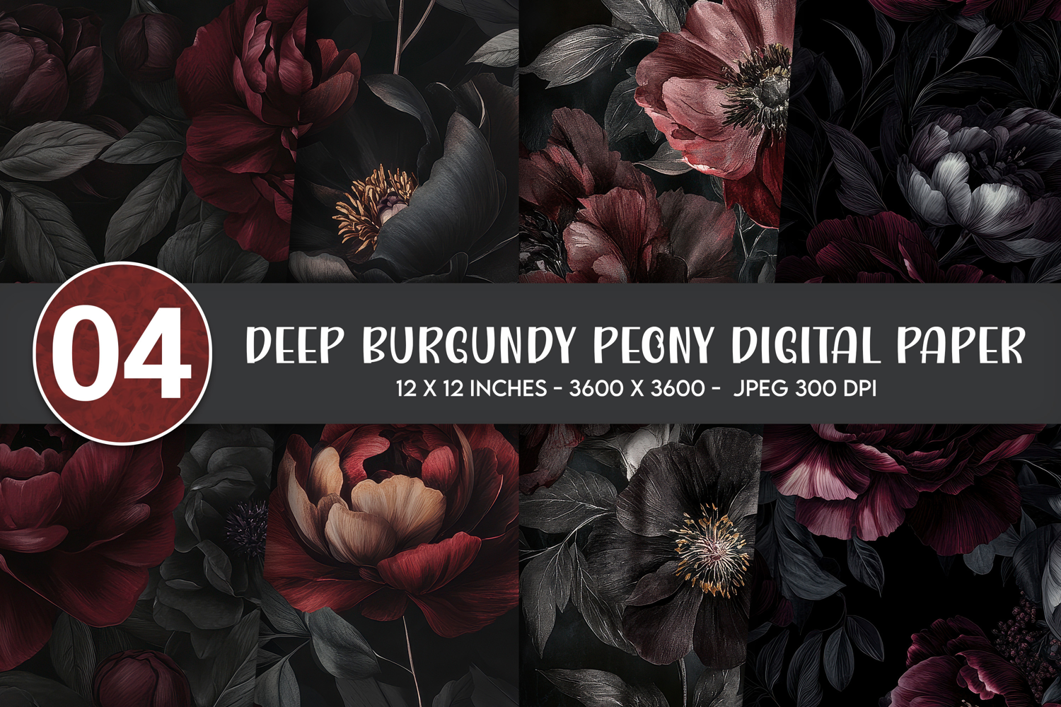 Deep Burgundy Peony Digital Paper