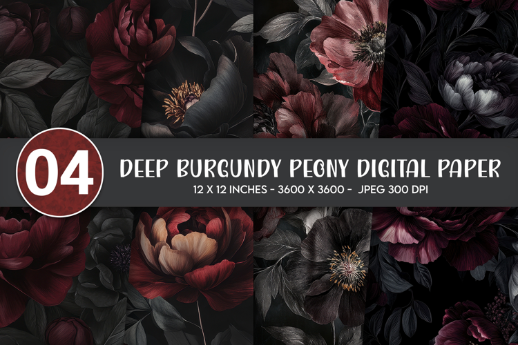 Similar Design Products to Deep Burgundy Peony Digital Paper