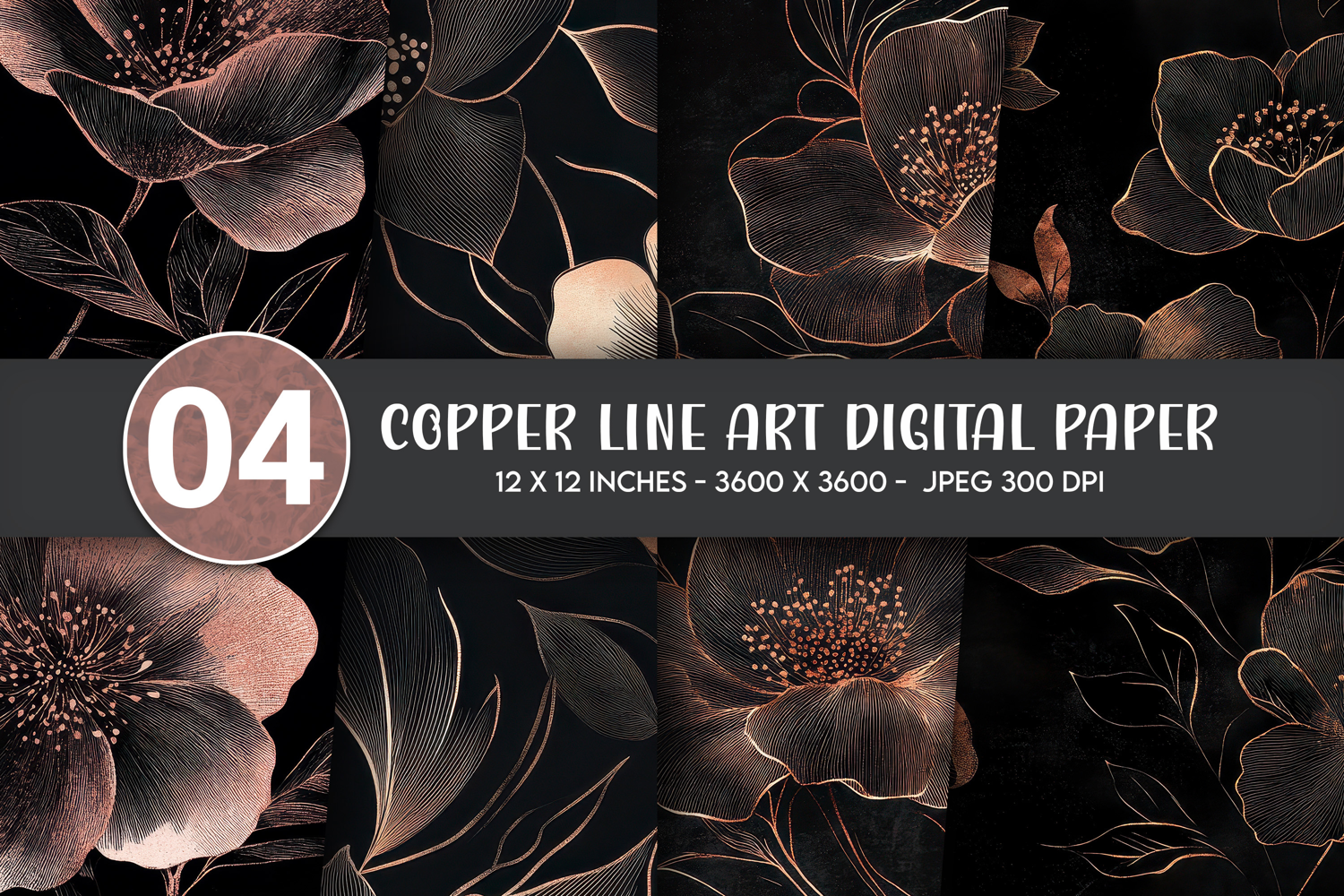 Copper Line Art Digital Paper