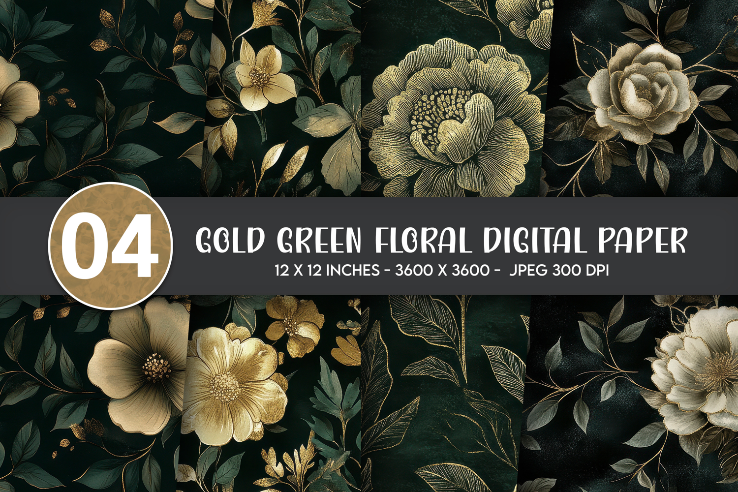 Gold Foil Background Gold Floral Pattern Gold Leaf Background Elegant Gold Pattern Luxury Floral Paper Emerald Gold Texture Dark Green Gold Metallic Flower Print Dark Botanical Gold Luxury Green Print