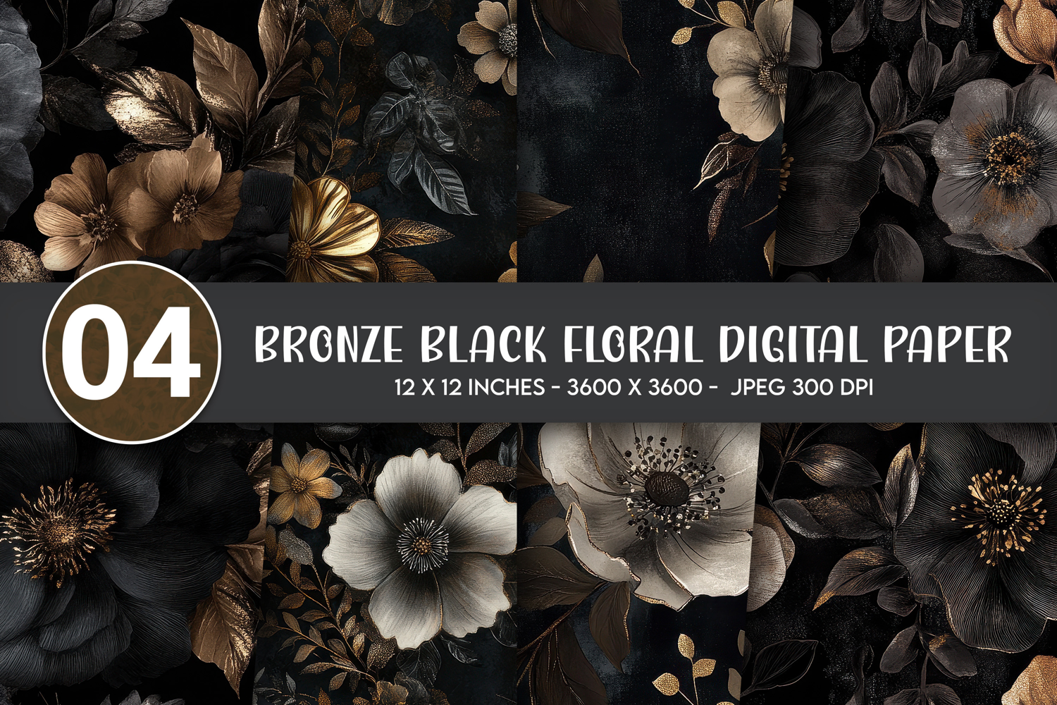 Moody Black Background Dark Bronze Texture Charcoal Flower Pattern Charcoal Floral Background Bronze Floral Pattern Black Gold Flower Metallic Black Print Bronze Rose Paper Bronze Botanical Print Dark Metallic Design