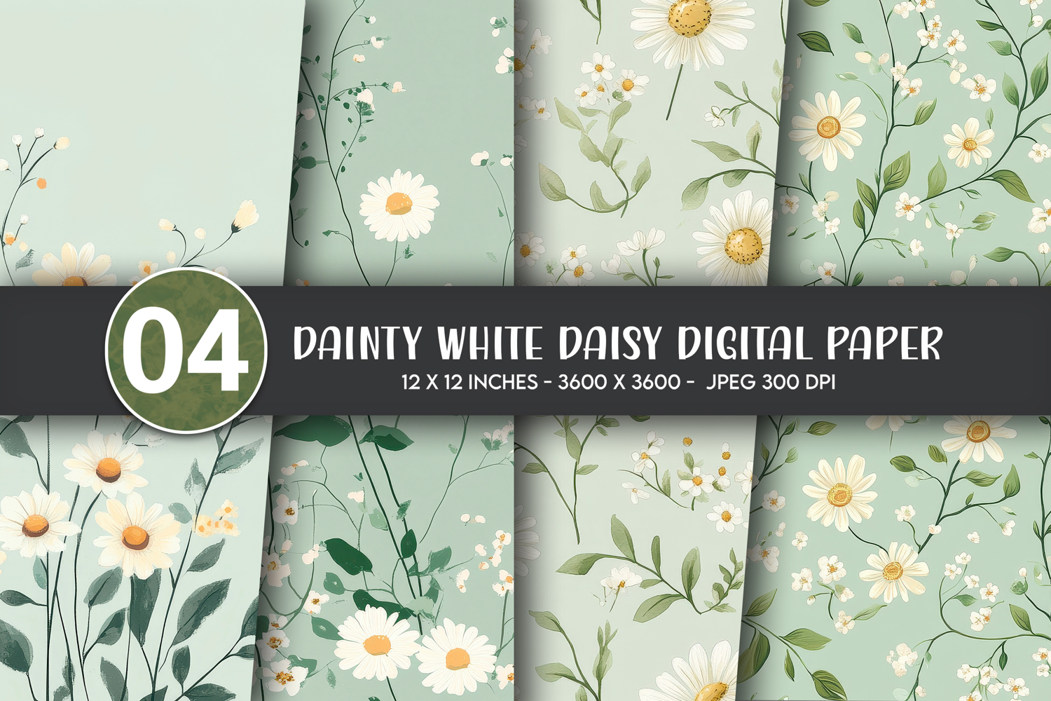 Sage Green Daisy Background White Flower Daisy Pattern Meadow Daisy Chamomile Pattern Chamomile Print Spring Daisy Yellow Center Petite Floral