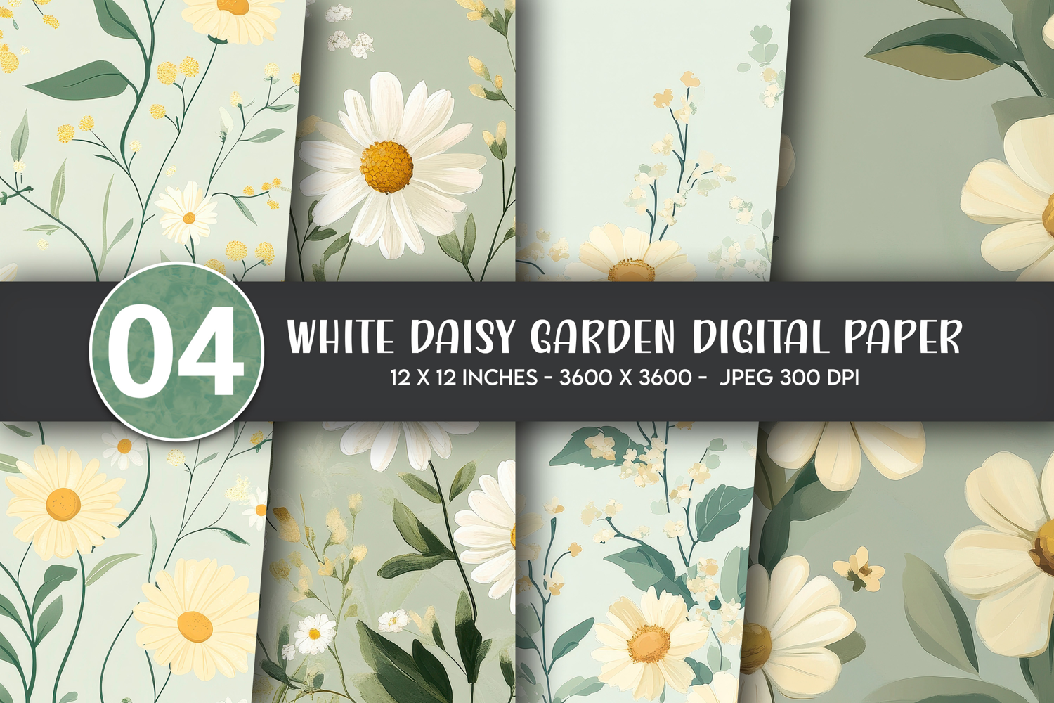 Similar Design Products to White Daisy Garden Digital Paper