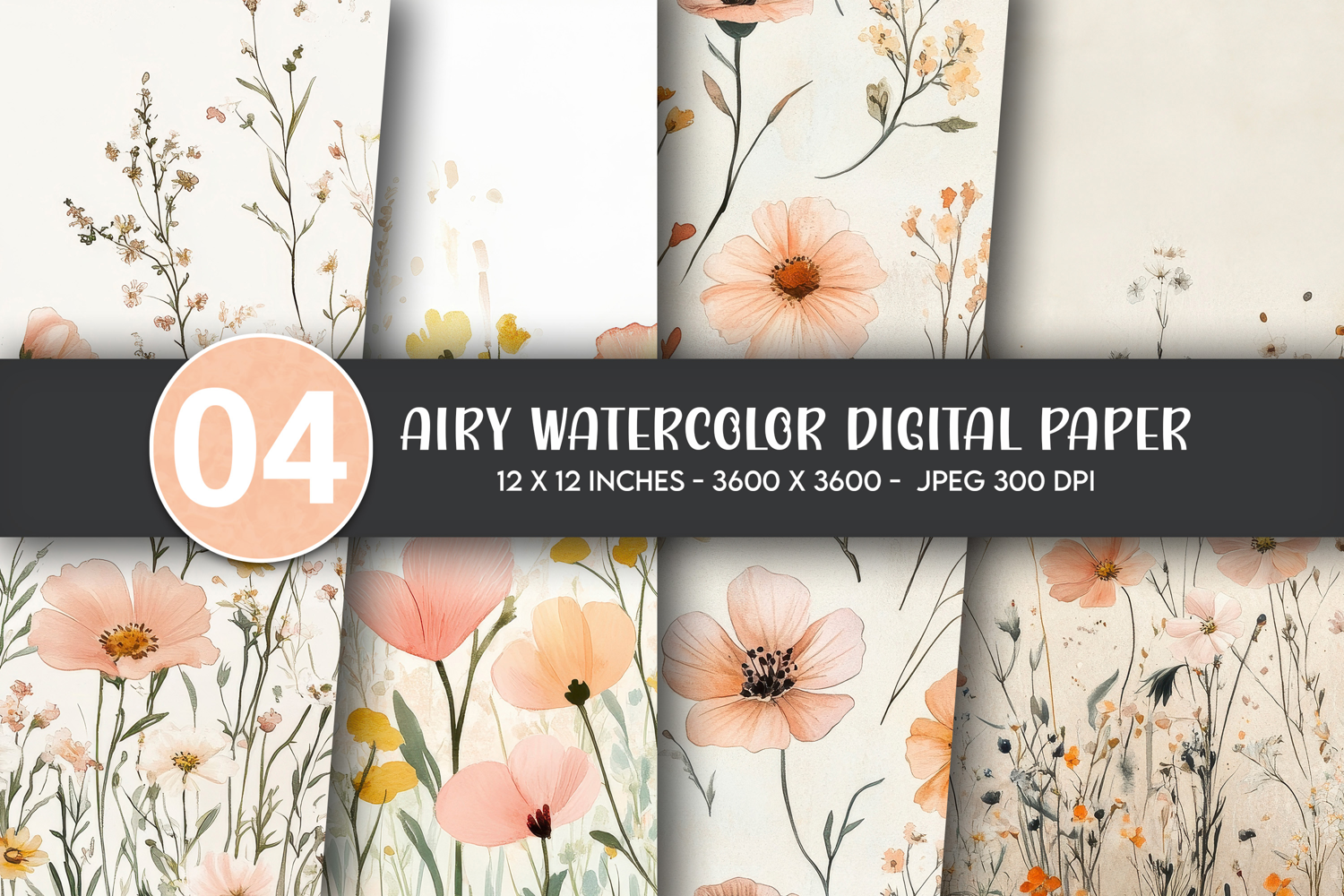 Peach Flower Light Background Botanical Paper Yellow Poppy Minimalist Background Watercolor Wildflower Sketch Floral Spring Field Dainty Pattern Airy Floral