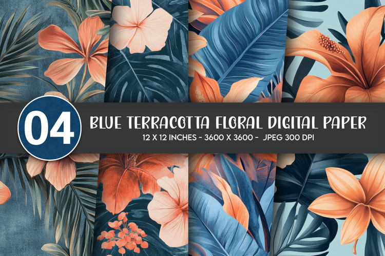 Similar Design Products to Blue Terracotta Floral Digital Paper