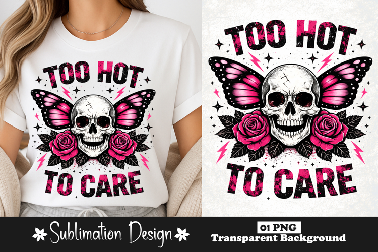 Sublimation Png Design Skull Butterfly Design Sassy Summer Quote Edgy Skull Art Summer Skull Graphic Too Hot To Care Pink Butterfly Skull Goth Summer Shirt Trendy Skull Aesthetic Women Summer Graphic