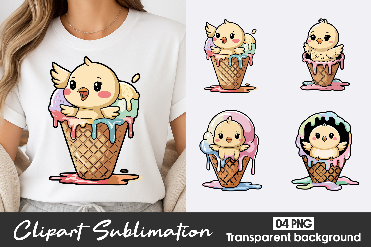 Cute Chick Ice Cream Clipart PNG example image 1