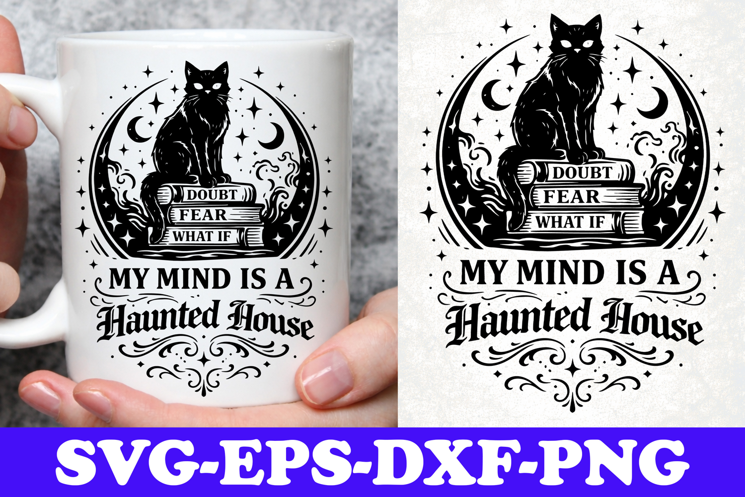 My Mind Is A Haunted House Black Cat SVG Design example image 1