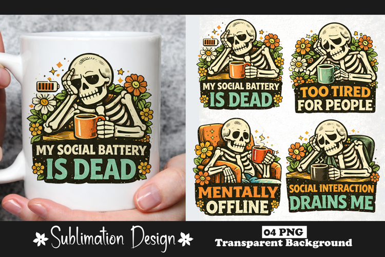Mental Health Humor Funny Skeleton Mug Skeleton Coffee Design Social Battery Dead Tired Introvert Gift Exhausted Skeleton Png Burnout Humor Design Low Energy Quote Introvert Struggle Shirt Relatable Funny Png