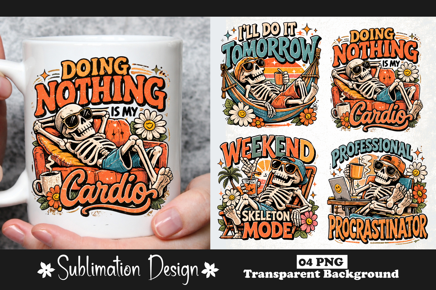 Doing Nothing Is My Cardio Skeleton PNG, Funny Lazy Humor Design, Procrastination Mug Sublimation