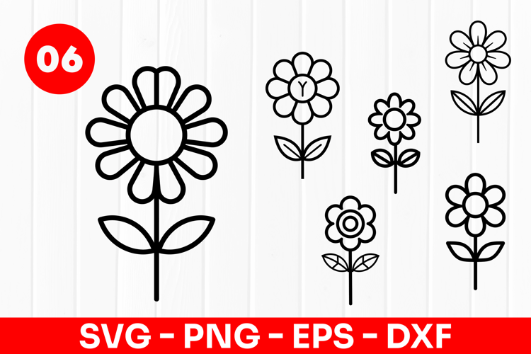 Simple Flower Doodle Floral Design SVG PNG example image 1