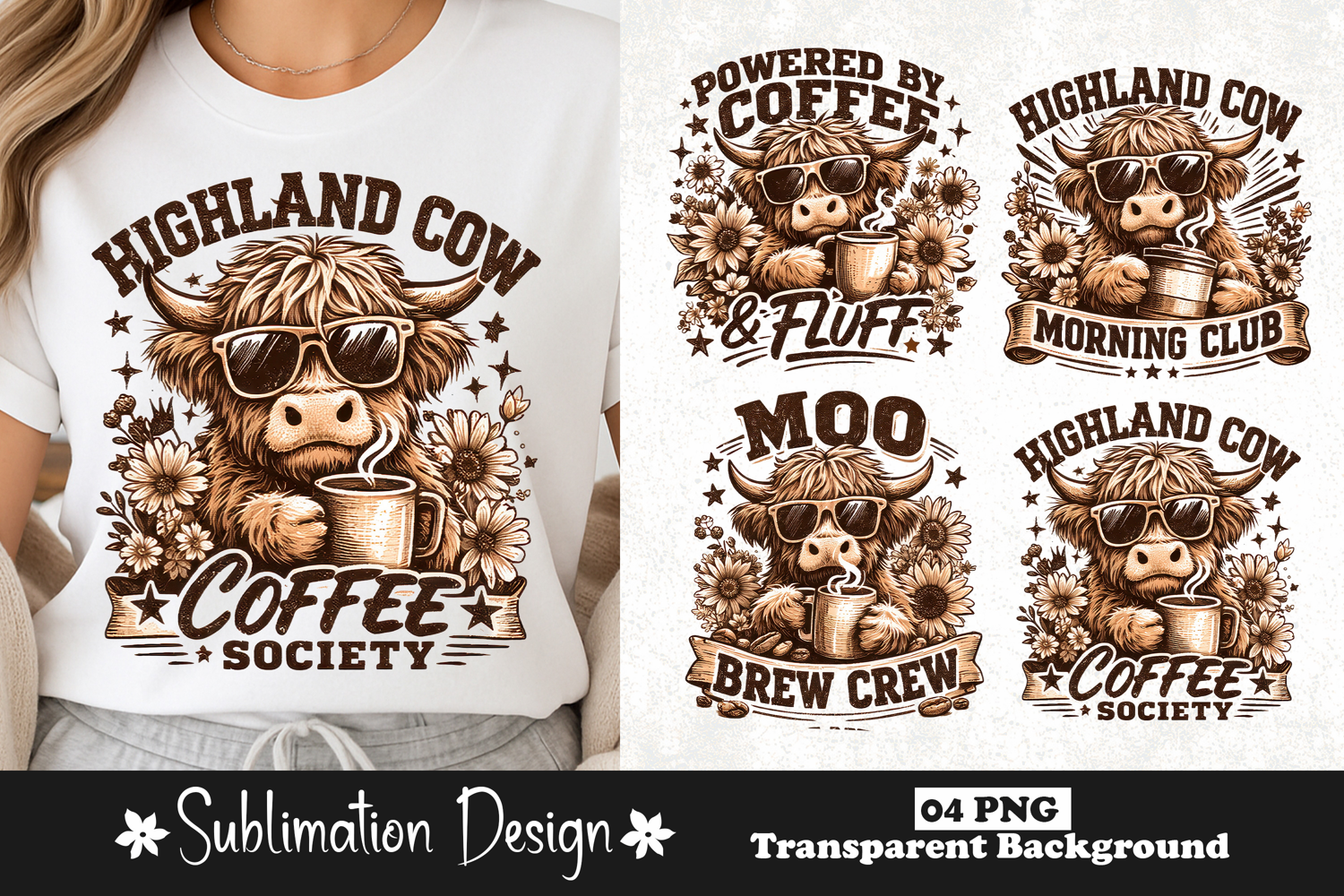 Highland Cow Coffee Society Vintage Western Coffee Sublimation Design