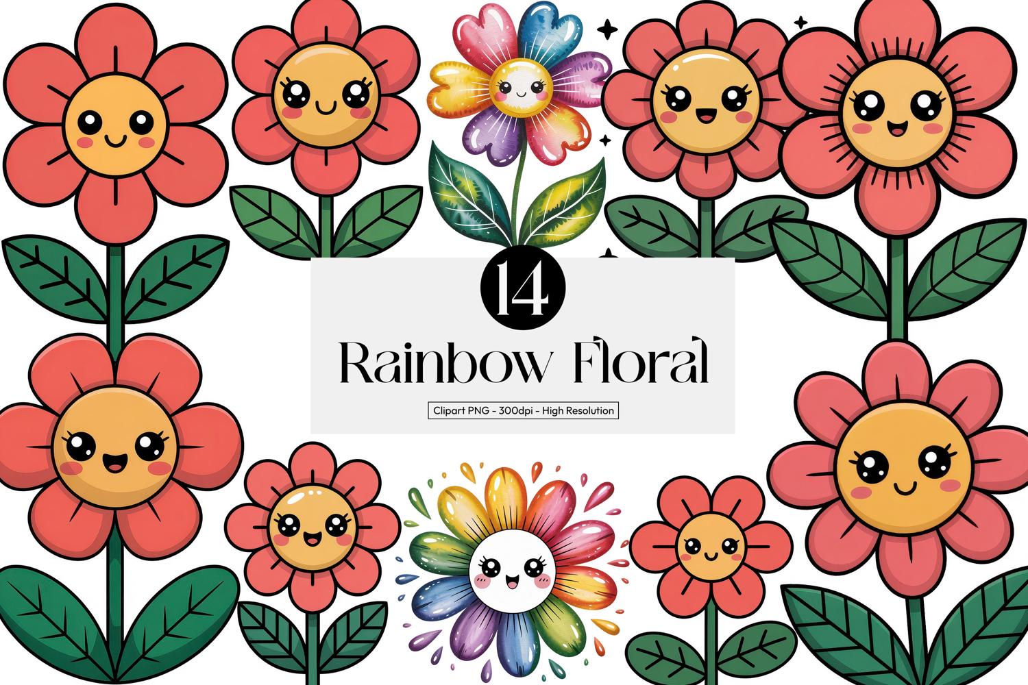 Rainbow Floral Cliparts pngs example image 1