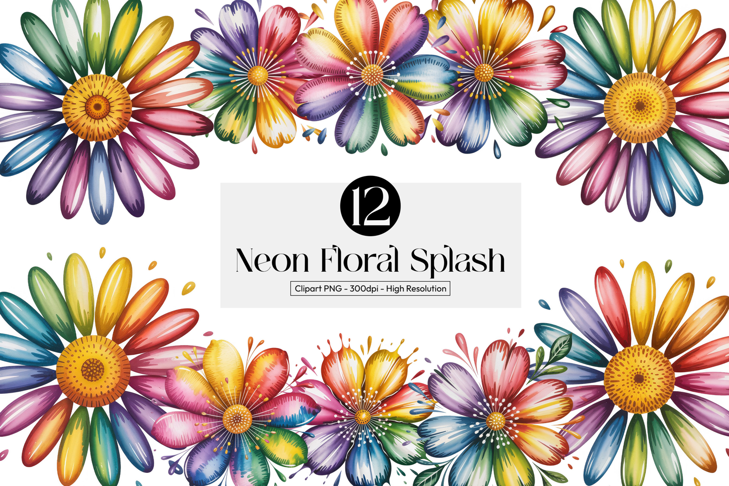 Neon Floral Splash Cliparts pngs example image 1
