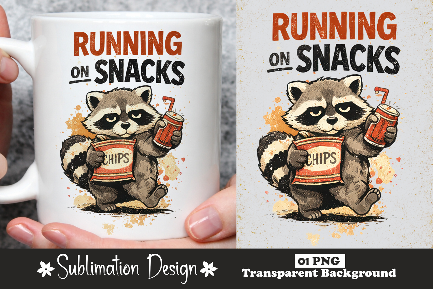 Running on Snacks Raccoon Sublimation Design