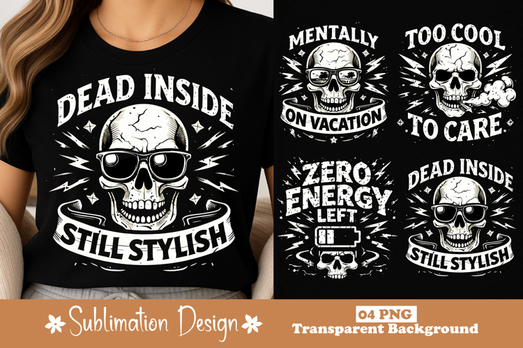 Dark Humor Sarcastic Quote Dead Inside Cool Attitude Streetwear Design Skull Sunglasses Gothic Aesthetic Edgy Fashion Still Stylish Introvert Vibe