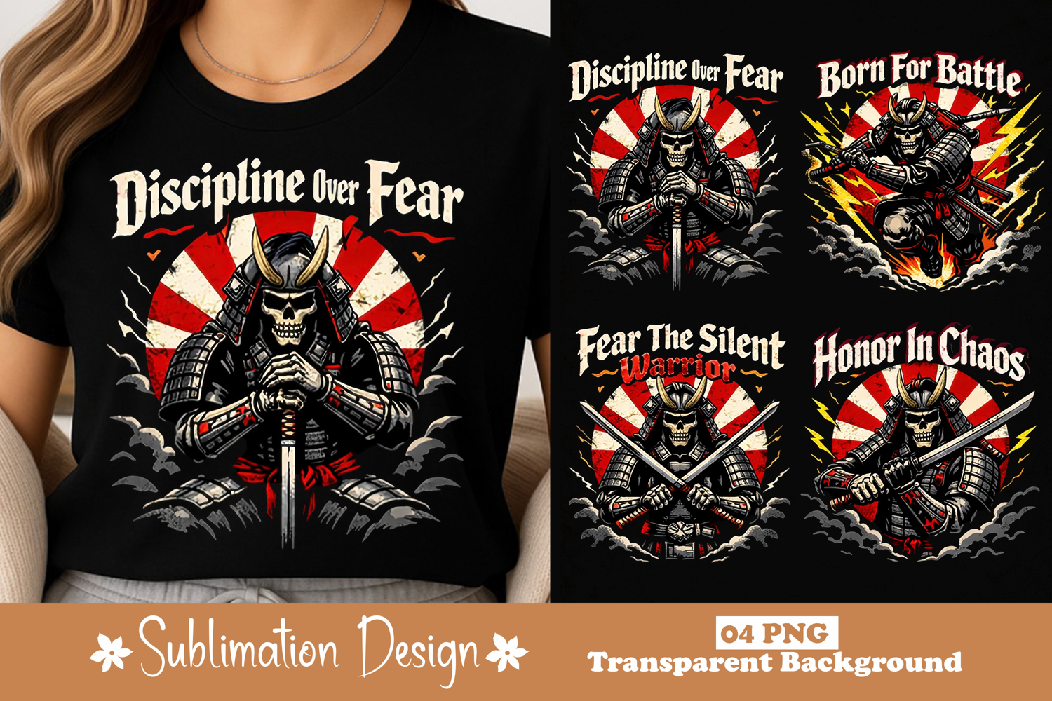 Discipline Over Fear Samurai Skeleton Warrior Graphic Design