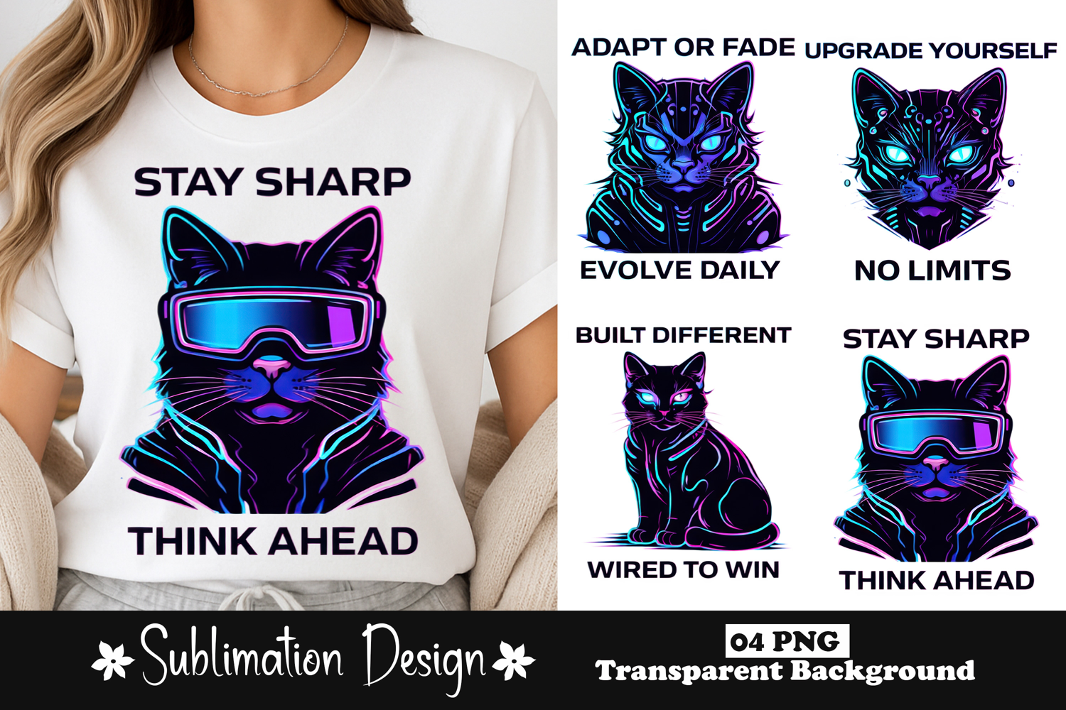 Digital Art Modern Style Futuristic Design Neon Aesthetic Stay Sharp Glowing Colors Cyberpunk Cat Cool Graphic Think Ahead Tech Vibe
