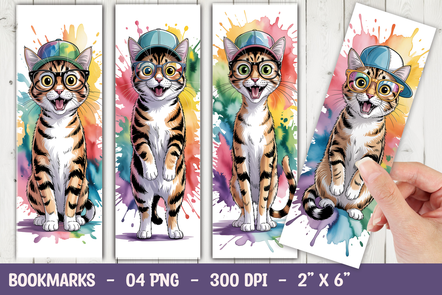 Printable Bookmark Watercolor Cat Digital Bookmark Sublimation Bookmark Design Colorful Cat Art Bookmark Sublimation Rainbow Cat Bookmark Cute Animal Bookmark Artistic Bookmark Stationery Bookmark