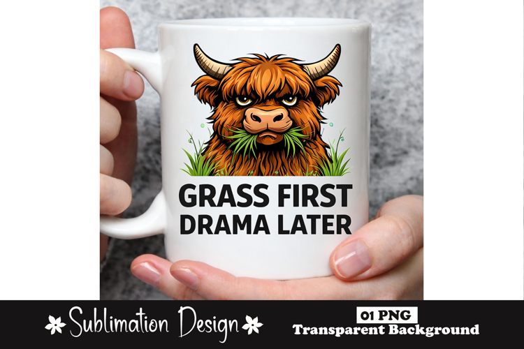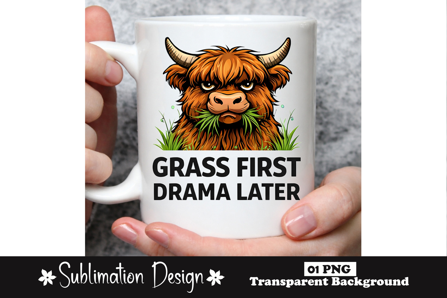 Sublimation Print Sarcastic Animal Funny Quote Design Cow Lover Gift Highland Cow Funny Cute Cow Graphic Farm Humor Grass First Drama Later Country Life Humor Western Style Art