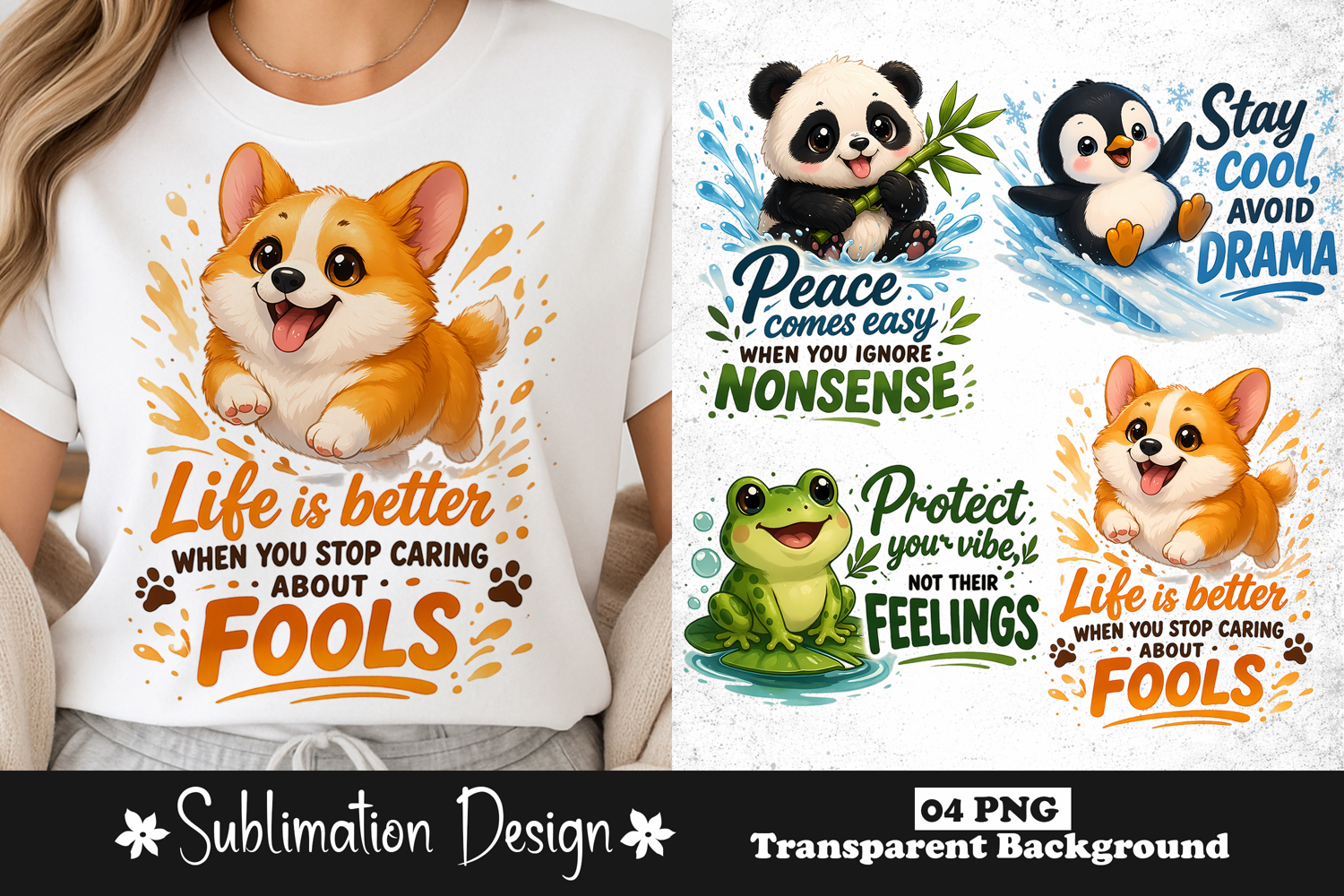 Sublimation Design Png Corgi Shirt Design Cute Animal Quotes Funny Positive Sayings Ignore Drama Quotes Panda Motivational Quote Frog Cartoon Design Penguin Cute Graphic Inspirational Humor Shirt Mental Health Positivity