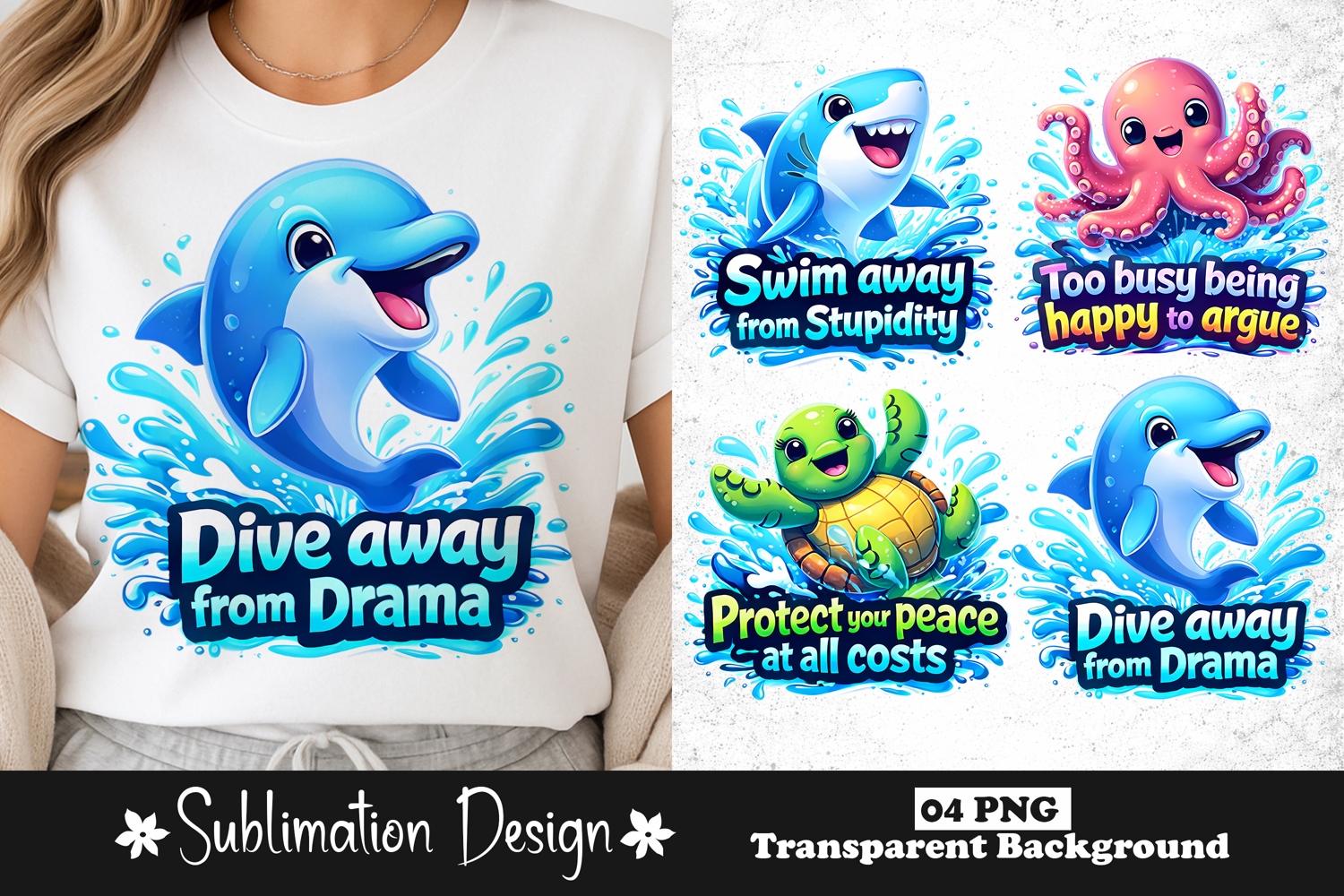 Summer Shirt Design Sublimation Design Png Ocean Animal Design Beach Life Vibes Happy Positive Sayings Aquatic Animals Illustration Dolphin Cute Graphic Turtle Cartoon Design Avoid Drama Quote Calming Aesthetic Art