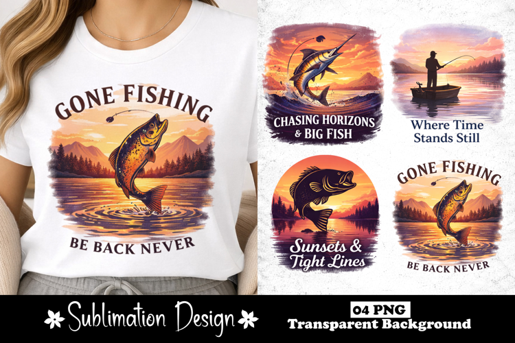 Sublimation File Gone Fishing Fishing Life Fishing Shirt Png Outdoor Lifestyle Fisherman Gift Idea Sunset Fishing Art Lake Scene Design Angler Quote Nature Fishing